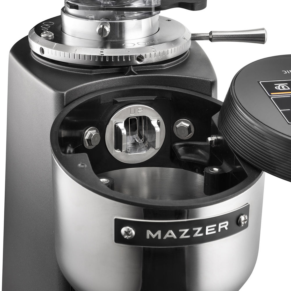 Minimalist design with smooth edges; Mazzer brand is ranked as the worlds #1 coffee bean grinder brand.